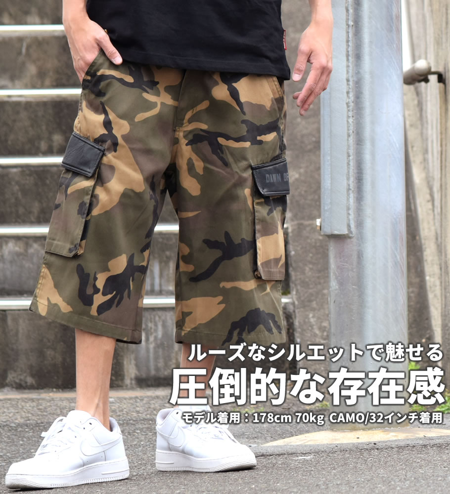 商品説明 DOPより迷彩6ポケットカーゴパンツが登場! ミリタリーテイストの定番柄"迷彩(カモフラ)"と定番ボトムス"カーゴパンツ" 定番×定番の間違いない注目のハーフパンツ。
