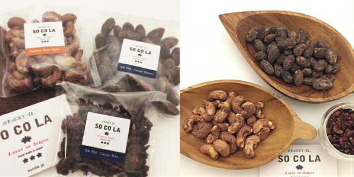 【送料無料メール便】 オリジナルバッグ付★お試しフレッシュカカオ3点セット★スーパーフード カカオニブ25g カカオビーンズ55g 大粒皮付カシューナッツ(薄塩)50g 無添加オーガニック /珍しい健康おつまみギフト ソコラ